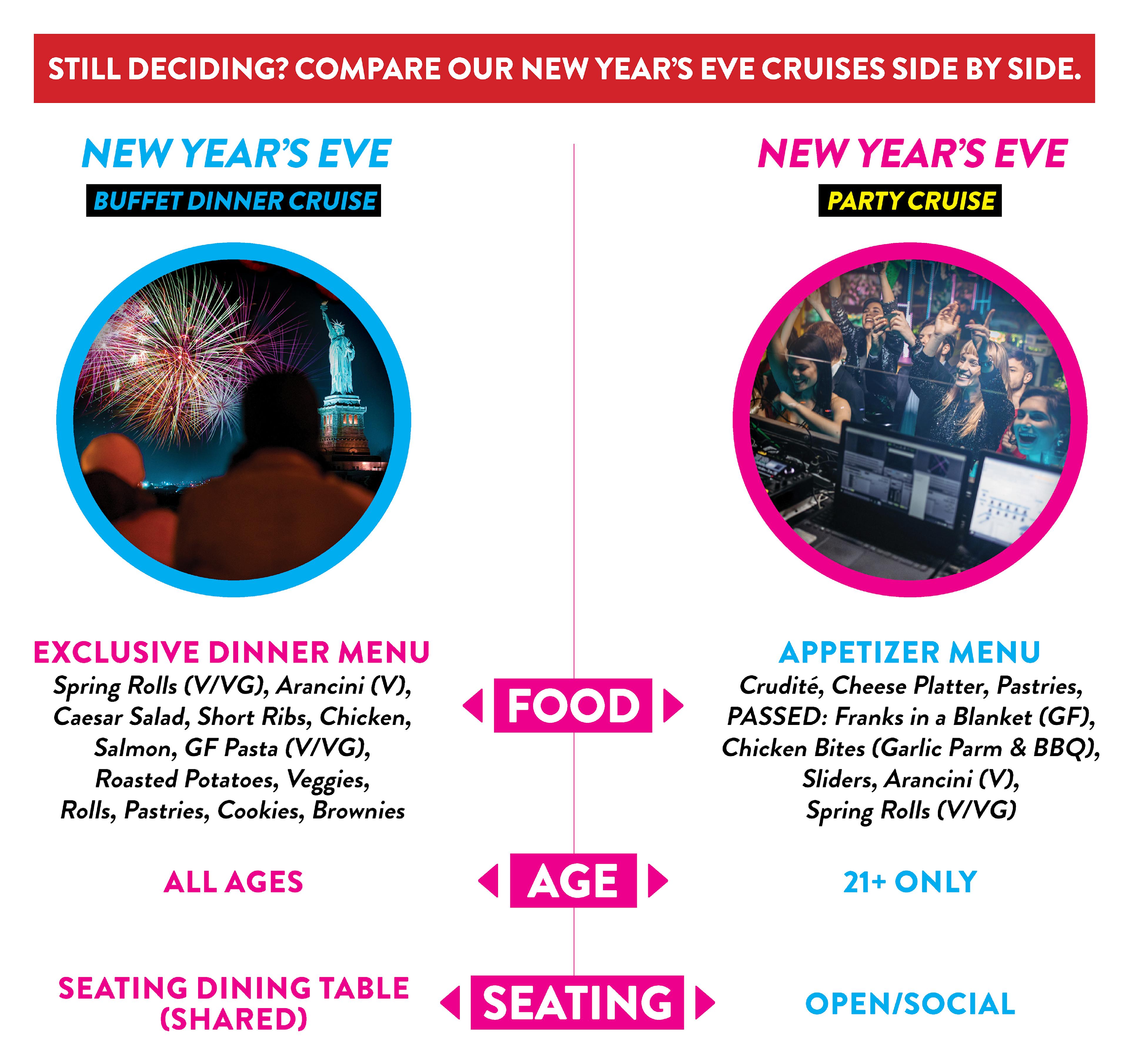 New York City is one of the most iconic places in the world to celebrate New Year’s Eve—and there’s no better way to experience it than on the water. Whether you're looking for a wild party or a festive dinner cruise, we’ve got two unforgettable options ready to set sail.